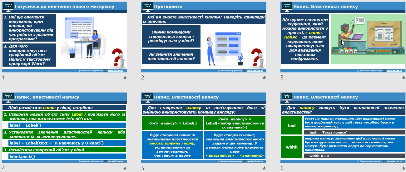 Урок 23 Напис: створення, властивості, події, обробники подій. За підручником Й.Я. Ривкінд
